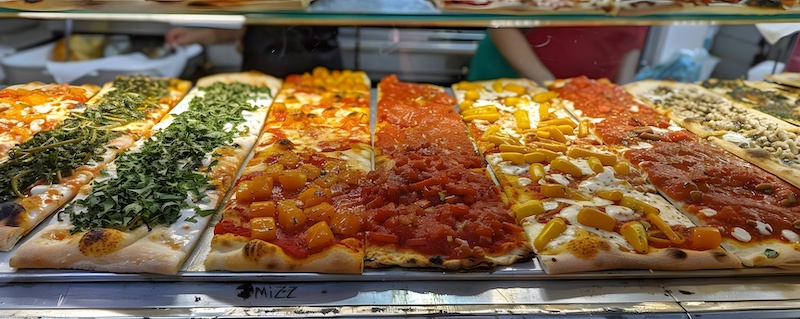 For lunch you can go to a pizza place, and order like a true Italian, the “Pizza al Taglio”, which is to order the flavors you want of pizza in the exact amount you want, then you just pay the value of each flavor based on its weight.